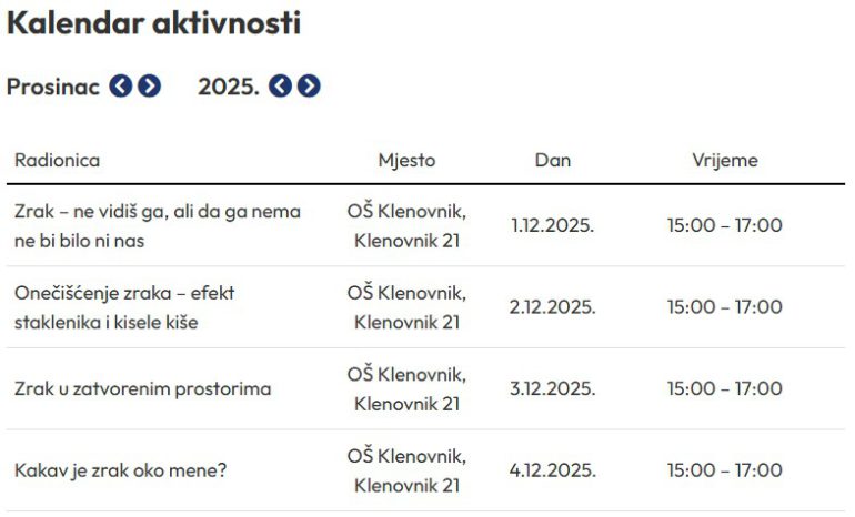 Mala škola će se održavati u vremenu od 1. do 4. prosinca 2025. godine u Osnovnoj školi grofa Janka Draškovića u Klenovniku, svaki dan od 15 do 17 sati. Sva potrebna oprema, materijal i drugi troškovi Male škole financiraju se iz sredstava projekta te je sudjelovanje za učenike u potpunosti besplatno.