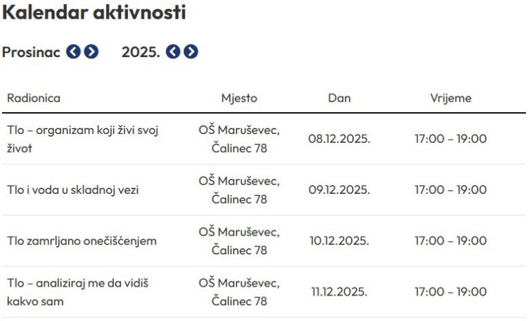 Mala škola će se održavati u vremenu od 8. do 11. prosinca 2025. godine u Osnovnoj školi „Gustav Krklec“ Maruševec, Čalinec 78, svaki dan od 17 do 19 sati. Sva potrebna oprema, materijal i drugi troškovi Male škole financiraju se iz sredstava projekta te je sudjelovanje za učenike u potpunosti besplatno.