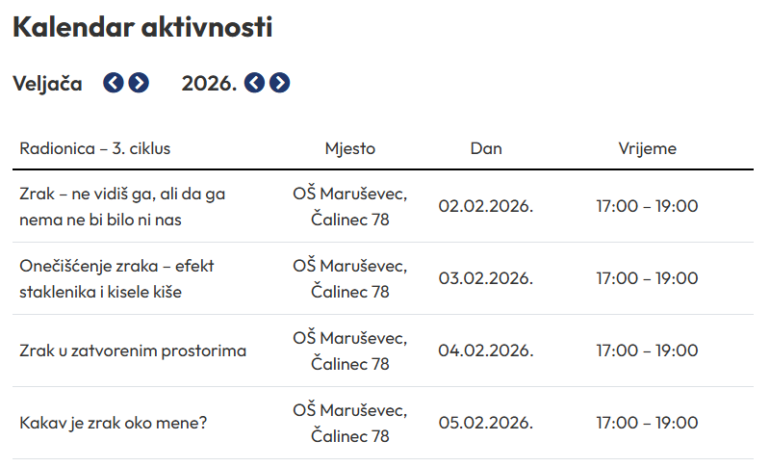 Mala škola će se održavati u vremenu od 02. do 05. veljače 2026. godine u Osnovnoj školi Maruševec, svaki dan od 17 do 19 sati. Sva potrebna oprema, materijal i drugi troškovi Male škole financiraju se iz sredstava projekta te je sudjelovanje za učenike u potpunosti besplatno, a svaki učenik može se upisati u jednu Malu školu po slobodnom izboru.